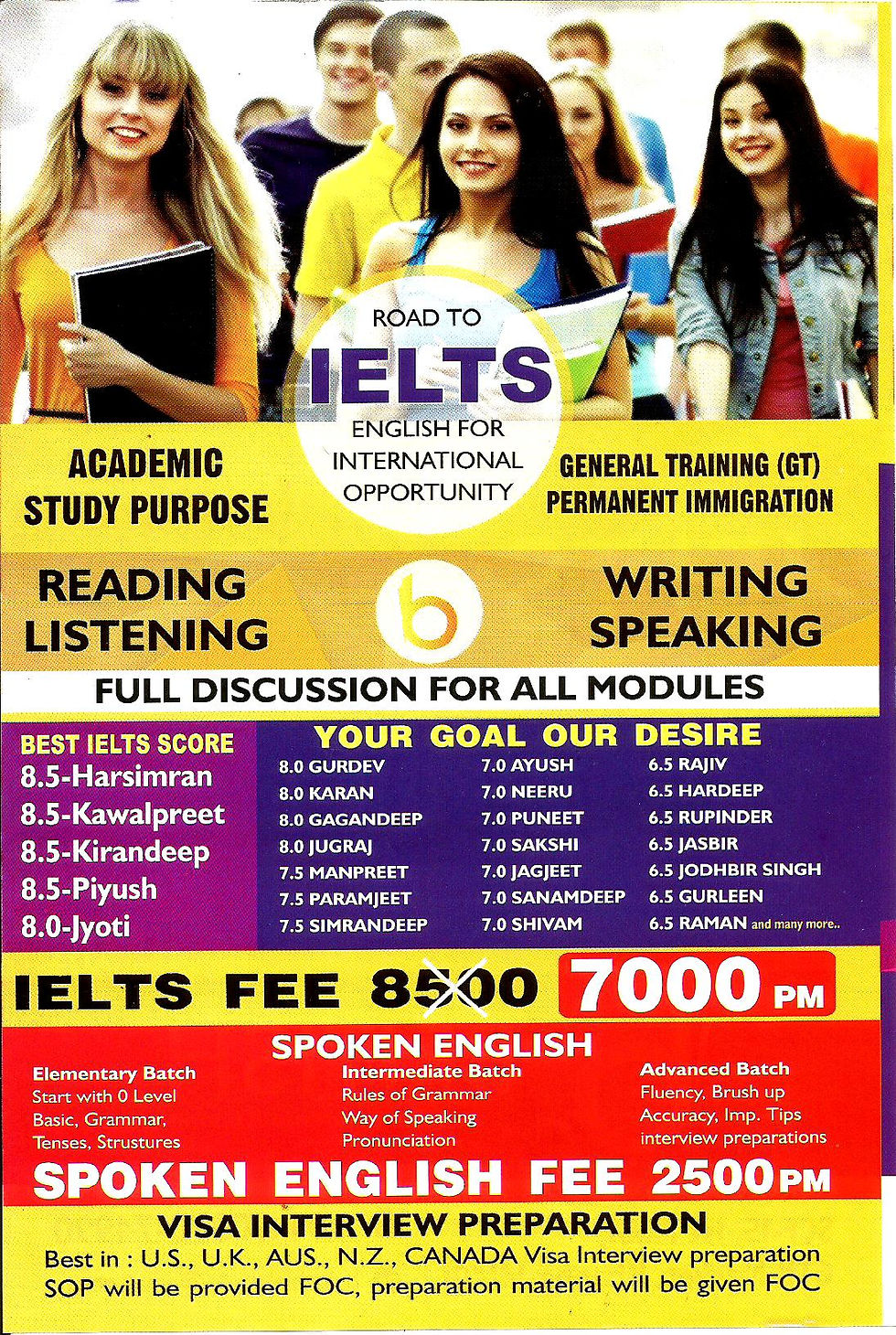 Good news for IELTS and spoken students fee has been reduced for IELTS class and spoekn english classes